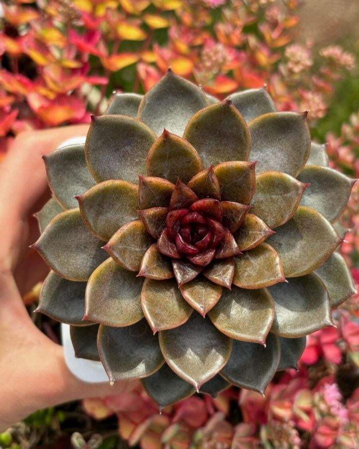 xGraptoveria 'Starfire' 星火?这个品种是Suculentia培育的,最开始培育者说它的属名写错了,亲本其实是Graptopetalum(风车草属),种名也取错了,Starfire,这个名字有其他拟石莲属用了。但现在还是继续叫着xGraptoveria 'Starfire'。这是四年前已经亮相过的品种,但好像今年才开始上市售卖。培育者对这个品种也非常满意,说在他的十大榜单里排名第一。