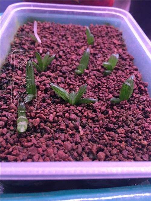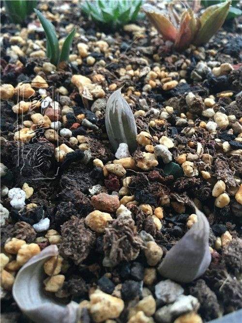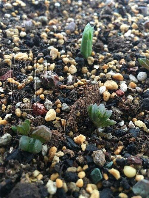 幼苗期:此时植物开始长出真叶,但体型依然很小,通常以2厘米作为一个分界点,为后续移盆做准备。此阶段的配土需求与芽期相似,但已不适合继续闷养,应逐步使其适应自然光线(注意,并非露养的强光直射,十二卷通常喜光但惧怕直射强光)和空气(自然界的风也富含养分,包括我们呼出的二氧化碳也是植物的“大餐”)。在保持湿润的同时,避免过度浇水即可,待其生长到2厘米以上,便可考虑换盆了。